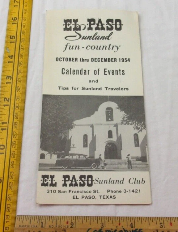 El Paso Texas Sunland Fun Country events calendar 1954 brochure | eBay