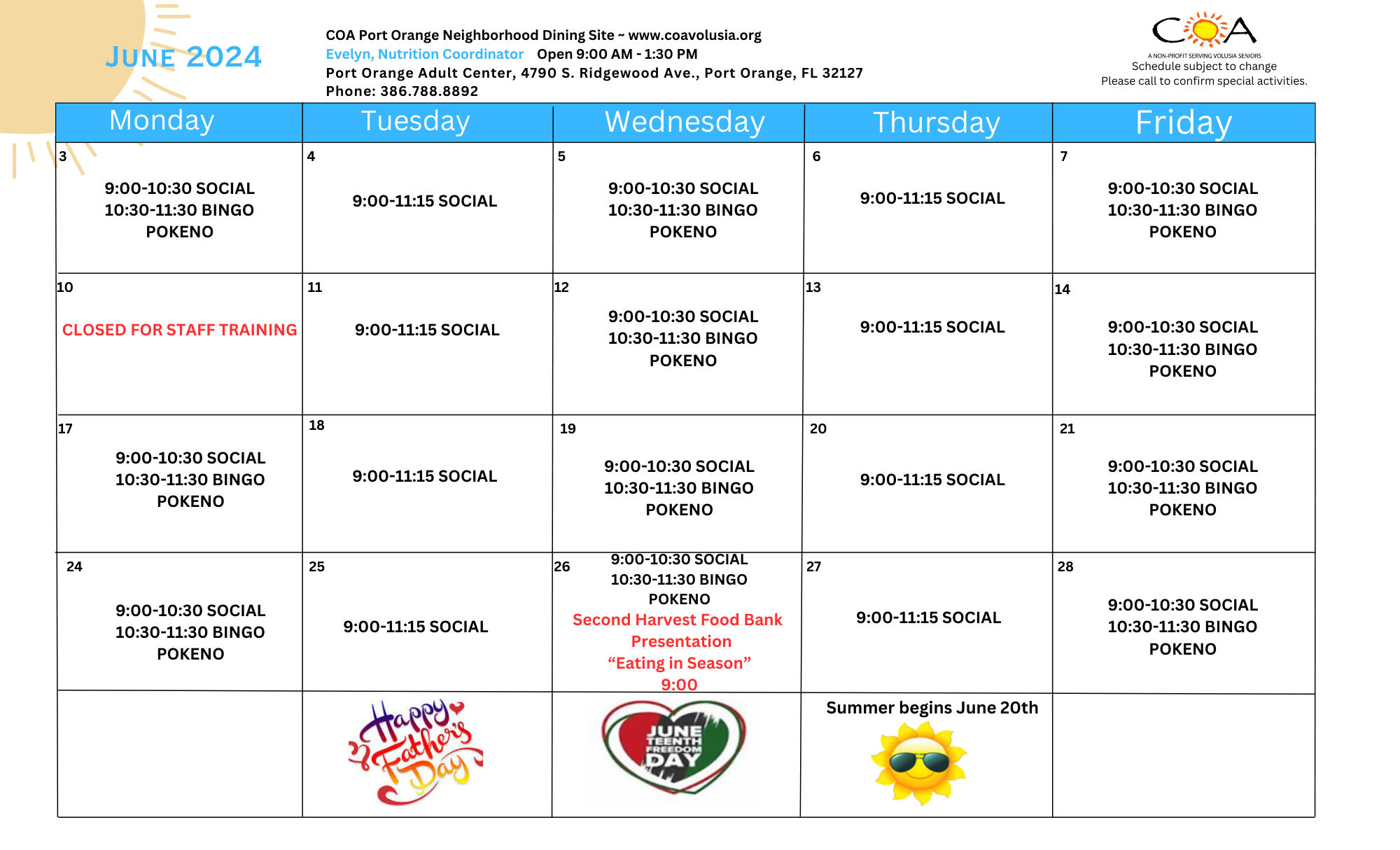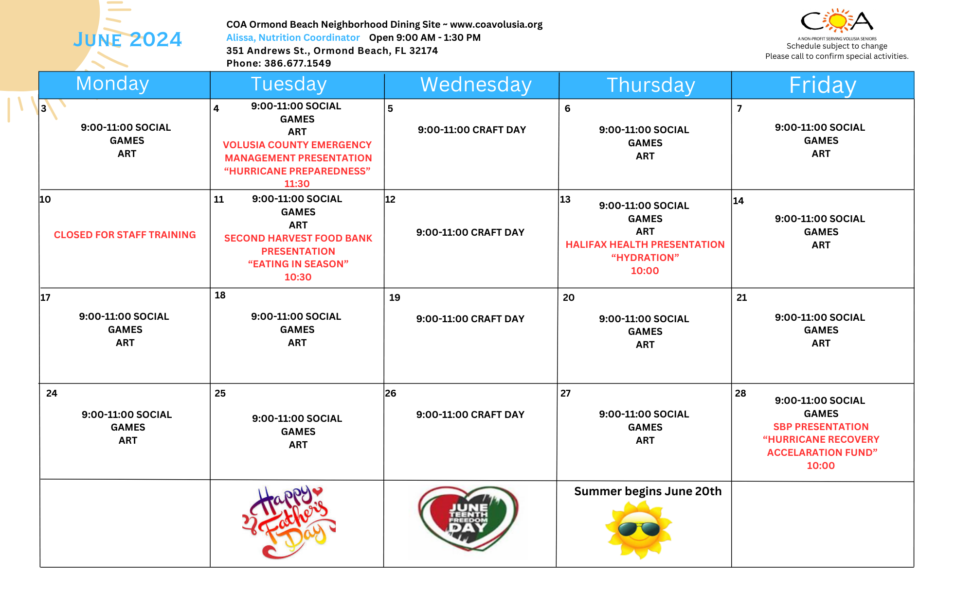COA Ormond Beach Senior Center & Neighborhood Dining Site Calendar