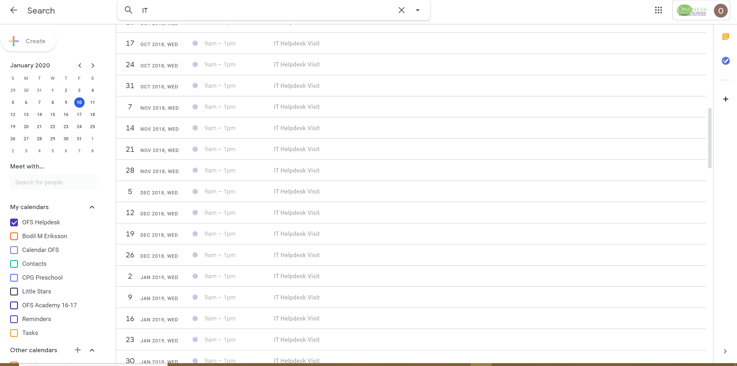 Is it possible to print full search results from Calendar