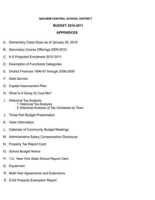 BUDGET 2010 2011 APPENDICES A Sachem Unspun