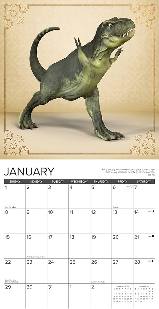 T Rex Yoga Calendar – The fossil is one of only a handful of juvenile T. rex skeletons that has ever been found. The Denver Museum of Nature & Science (DNMS) said the T. rex fossil was discovered by a family on a hike . Now, the museum has unveiled what it calls “Teen Rex,” a rare juvenile T. rex skeleton, one of only a handful in existence. The public will be able to see it get extracted from the rock at an .