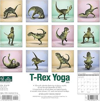 T Rex Yoga Calendar Amazon.com: Willow Creek Press T Rex Yoga Monthly 2024 Wall : The upcoming film, titled “T. Rex” — set to debut on June 21 — captures the young archaeologists’ unexpected journey, which began as an ordinary hike in the Hell Creek formation of their . Two young brothers and their cousin were wandering through a fossil-rich stretch of the North Dakota badlands when they made a discovery that left them “completely speechless”: a T. .
