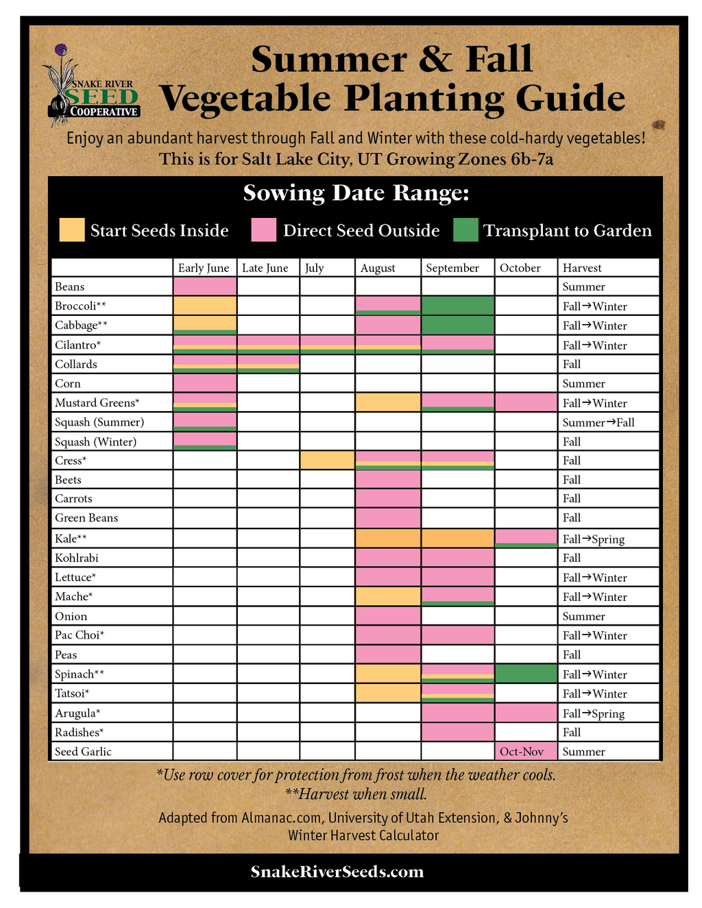 Summer and Fall Vegetable Planting Guide for the Salt Lake City