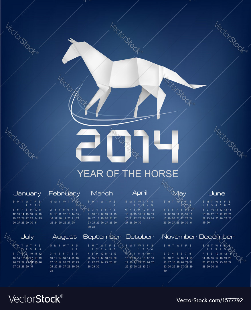 Calendar for the year 2014 origami horse Vector Image